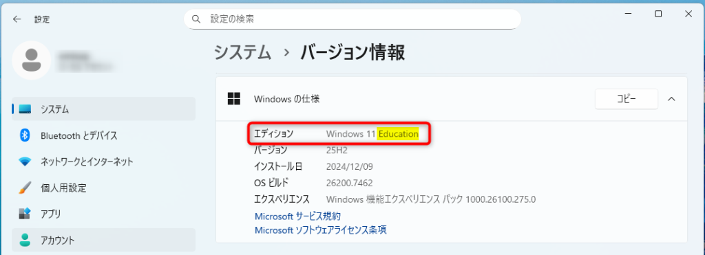 Windows OSのエディションを確認して、「Education」のPCをお使いの方は、次の手順でOSライセンス設定ツールを実行してください。