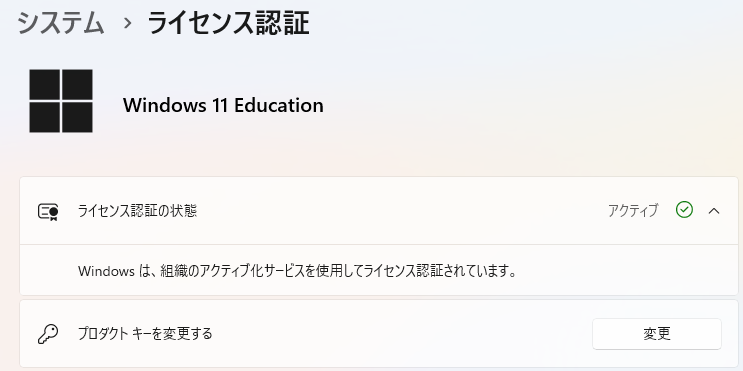 「ライセンス認証の状態」がアクティブになっていればOKです。