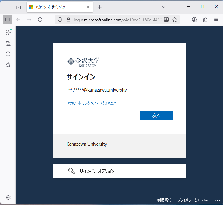 1. Microsoft365のアカウント(@kanazawa.university)でサインインをおこないます。